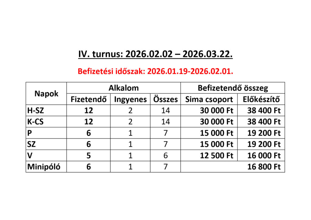 A 2025/26-os tanév IV. turnusa 2026.02.02-től 2026.03.22-ig tart.